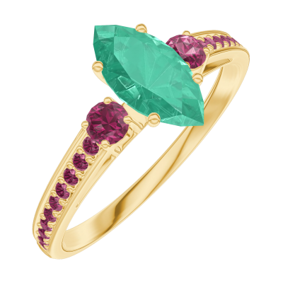 « L'ATELIER » NO. 164750Ring Yellow gold 9 carats - Emerald Marquise 0.5 Carats - Ring settings Ruby - Setting Ruby