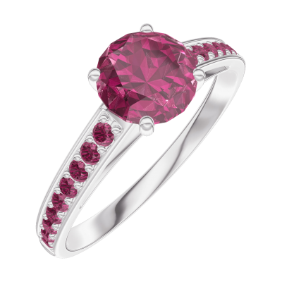 « L'ATELIER » NO. 165411Ring White gold 18 carats - Ruby round 0.7 Carats - Setting Ruby 4.9