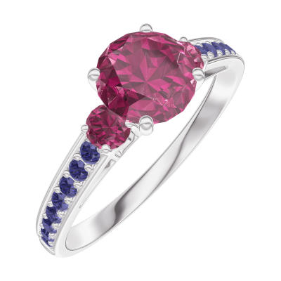 « L'ATELIER » NO. 165456Ring White gold 9 carats - Ruby round 0.7 Carats - Ring settings Ruby - Setting Blue Sapphire 4.9