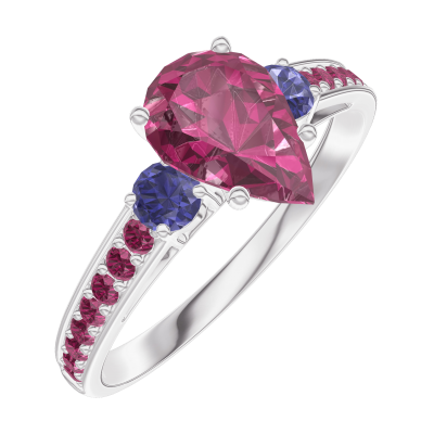 « L'ATELIER » NO. 165872Ring White gold 9 carats - Ruby Pear 0.7 Carats - Ring settings Blue Sapphire - Setting Ruby