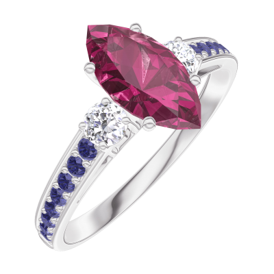 « L'ATELIER » Nº165935Ring White gold 18 carats - Ruby Marquise 0.7 Carats - Ring settings Diamond white - Setting Blue Sapphire