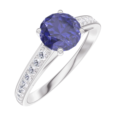 « L'ATELIER » NO. 166007Ring White gold 18 carats - Blue Sapphire round 0.7 Carats - Setting Diamond white 4.9