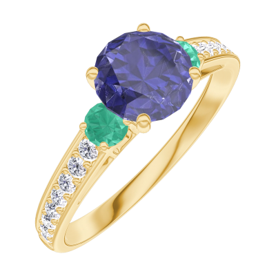 « L'ATELIER » NO. 166086Ring Yellow gold 9 carats - Blue Sapphire round 0.7 Carats - Ring settings Emerald - Setting Diamond white 4.9