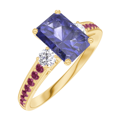 « L'ATELIER » Nº166229Ring Yellow gold 18 carats - Blue Sapphire Baguette 0.7 Carats - Ring settings Diamond white - Setting Ruby