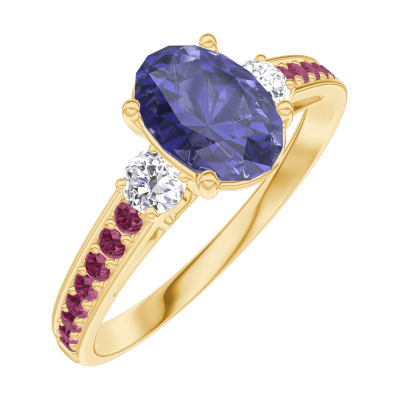 « L'ATELIER » Nº166330Ring Yellow gold 9 carats - Blue Sapphire Oval 0.7 Carats - Ring settings Diamond white - Setting Ruby