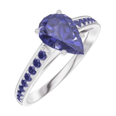 « L'ATELIER » NO. 166415Ring White gold 18 carats - Blue Sapphire Pear 0.7 Carats - Setting Blue Sapphire