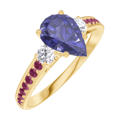 « L'ATELIER » Nº166429Ring Yellow gold 18 carats - Blue Sapphire Pear 0.7 Carats - Ring settings Diamond white - Setting Ruby