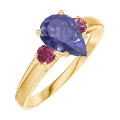 « L'ATELIER » NO. 166442Ring Yellow gold 9 carats - Blue Sapphire Pear 0.7 Carats - Ring settings Ruby