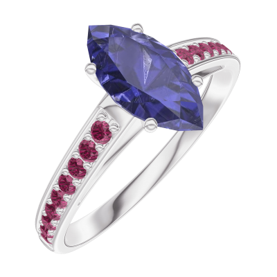 « L'ATELIER » NO. 166511Ring White gold 18 carats - Blue Sapphire Marquise 0.7 Carats - Setting Ruby
