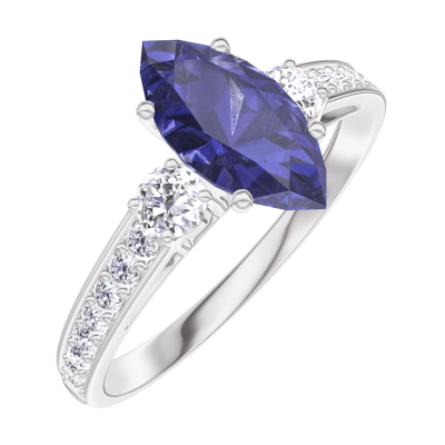 « L'ATELIER » NO. 166528Ring White gold 9 carats - Blue Sapphire Marquise 0.7 Carats - Ring settings Diamond white - Setting Diamond white