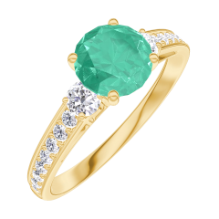 Ring Yellow gold 18 carats - Emerald round 0.7 Carats - Ring settings Diamond white - Setting Diamond white
