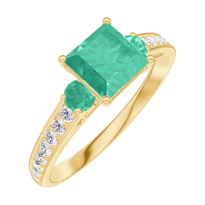 « L'ATELIER » NO. 166786Ring Yellow gold 9 carats - Emerald Princess 0.7 Carats - Ring settings Emerald - Setting Diamond white