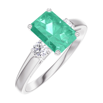 « L'ATELIER » NO. 166824Ring White gold 9 carats - Emerald Baguette 0.7 Carats - Ring settings Diamond white