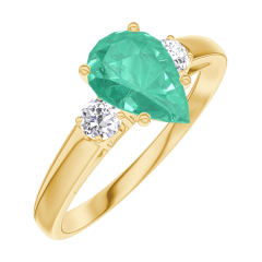 Ring Yellow gold 18 carats - Emerald Pear 0.7 Carats - Ring settings Diamond white