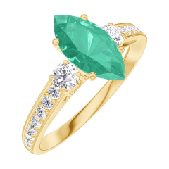 Ring Yellow gold 18 carats - Emerald Marquise 0.7 Carats - Ring settings Diamond white - Setting Diamond white