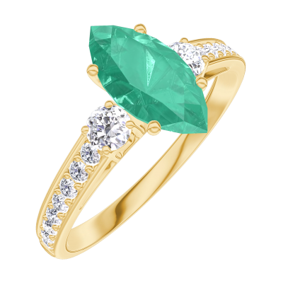 « L'ATELIER » NO. 167126Ring Yellow gold 9 carats - Emerald Marquise 0.7 Carats - Ring settings Diamond white - Setting Diamond white