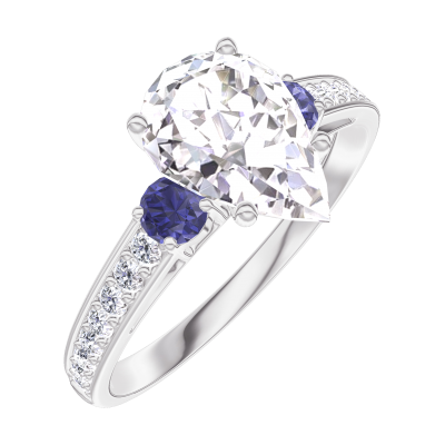 « L'ATELIER » NO. 167668Ring White gold 9 carats - Diamond white Pear 1 Carats - Ring settings Blue Sapphire - Setting Diamond white
