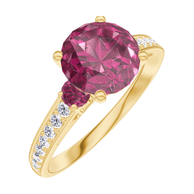« L'ATELIER » NO. 167846Ring Yellow gold 9 carats - Ruby round 1 Carats - Ring settings Ruby - Setting Diamond white 4.8