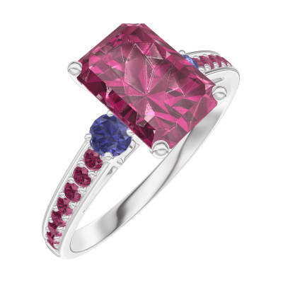 « L'ATELIER » NO. 168071Ring White gold 18 carats - Ruby Baguette 1 Carats - Ring settings Blue Sapphire - Setting Ruby 4.6