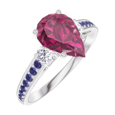 « L'ATELIER » Nº168236Ring White gold 9 carats - Ruby Pear 1 Carats - Ring settings Diamond white - Setting Blue Sapphire