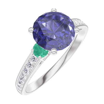 « L'ATELIER » NO. 168487Ring White gold 18 carats - Blue Sapphire round 1 Carats - Ring settings Emerald - Setting Diamond white 4.8