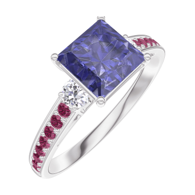 « L'ATELIER » Nº168531Ring White gold 18 carats - Blue Sapphire Princess 1 Carats - Ring settings Diamond white - Setting Ruby