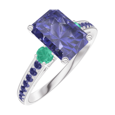 « L'ATELIER » NO. 168696Ring White gold 9 carats - Blue Sapphire Baguette 1 Carats - Ring settings Emerald - Setting Blue Sapphire 4.6