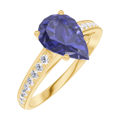 « L'ATELIER » NO. 168805Ring Yellow gold 18 carats - Blue Sapphire Pear 1 Carats - Setting Diamond white