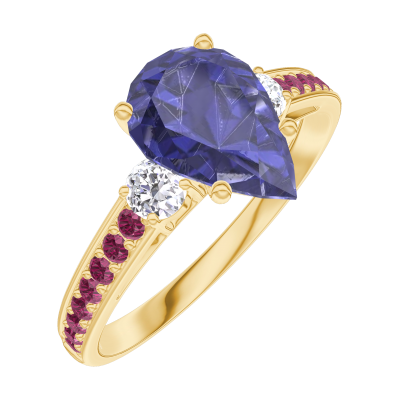« L'ATELIER » Nº168829Ring Yellow gold 18 carats - Blue Sapphire Pear 1 Carats - Ring settings Diamond white - Setting Ruby