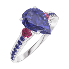 Ring White gold 9 carats - Blue Sapphire Pear 1 Carats - Ring settings Ruby - Setting Blue Sapphire