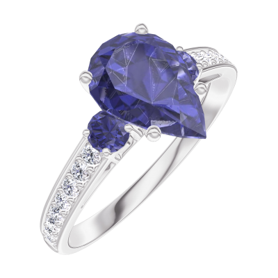 « L'ATELIER » NO. 168867Ring White gold 18 carats - Blue Sapphire Pear 1 Carats - Ring settings Blue Sapphire - Setting Diamond white