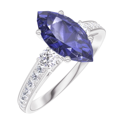 « L'ATELIER » NO. 168927Ring White gold 18 carats - Blue Sapphire Marquise 1 Carats - Ring settings Diamond white - Setting Diamond white
