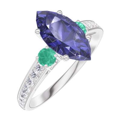 « L'ATELIER » Nº168987Ring White gold 18 carats - Blue Sapphire Marquise 1 Carats - Ring settings Emerald - Setting Diamond white