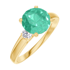 Ring Yellow gold 18 carats - Emerald round 1 Carats - Ring settings Diamond white