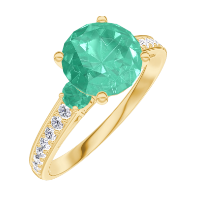 « L'ATELIER » NO. 169086Ring Yellow gold 9 carats - Emerald round 1 Carats - Ring settings Emerald - Setting Diamond white 4.8