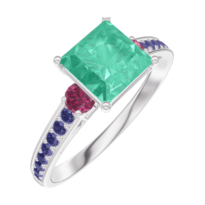 « L'ATELIER » NO. 169156Ring White gold 9 carats - Emerald Princess 1 Carats - Ring settings Ruby - Setting Blue Sapphire