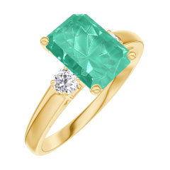 Ring Yellow gold 18 carats - Emerald Baguette 1 Carats - Ring settings Diamond white