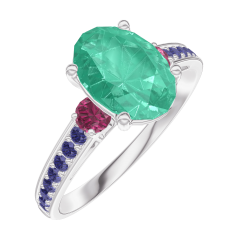 « L'ATELIER » NO. 169356Ring White gold 9 carats - Emerald Oval 1 Carats - Ring settings Ruby - Setting Blue Sapphire 4.7
