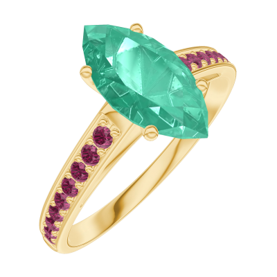 « L'ATELIER » Nº169509Ring Yellow gold 18 carats - Emerald Marquise 1 Carats - Setting Ruby