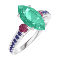 « L'ATELIER » NO. 169556Ring White gold 9 carats - Emerald Marquise 1 Carats - Ring settings Ruby - Setting Blue Sapphire
