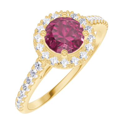 « L'ATELIER » NO. 170293Ring Yellow gold 18 carats - Ruby round 0.5 Carats - Halo Diamond white - Setting Diamond white 4.7