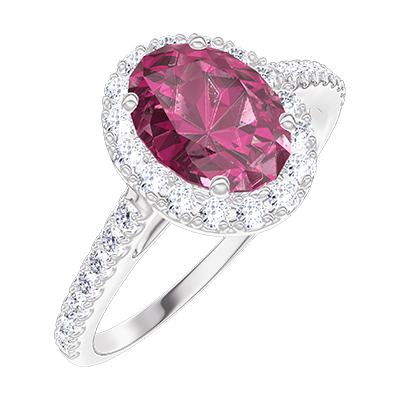 « L'ATELIER » NO. 170440Ring White gold 9 carats - Ruby Oval 0.5 Carats - Halo Diamond white - Setting Diamond white 4.5