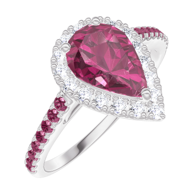 « L'ATELIER » NO. 170491Ring White gold 18 carats - Ruby Pear 0.5 Carats - Halo Diamond white - Setting Ruby 4.8