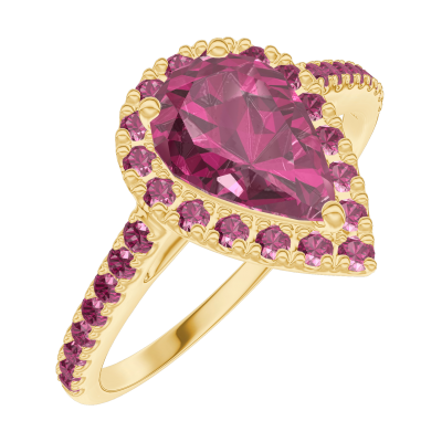 « L'ATELIER » NO. 170505Ring Yellow gold 18 carats - Ruby Pear 0.5 Carats - Halo Ruby - Setting Ruby 4.8
