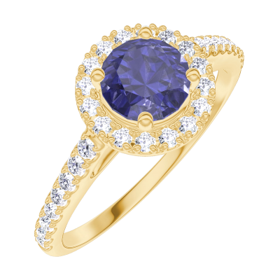 « L'ATELIER » NO. 170582Ring Yellow gold 9 carats - Blue Sapphire round 0.5 Carats - Halo Diamond white - Setting Diamond white 4.7