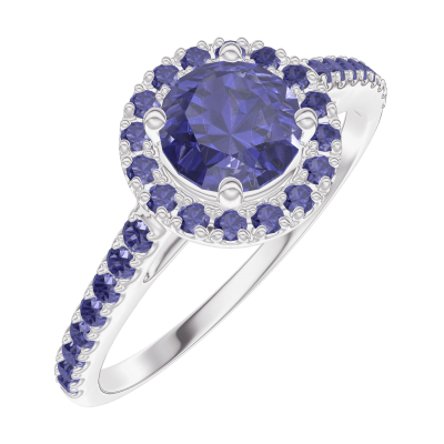 « L'ATELIER » NO. 170624Ring White gold 9 carats - Blue Sapphire round 0.5 Carats - Halo Blue Sapphire - Setting Blue Sapphire 4.7
