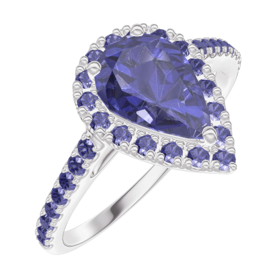 « L'ATELIER » NO. 170815Ring White gold 18 carats - Blue Sapphire Pear 0.5 Carats - Halo Blue Sapphire - Setting Blue Sapphire 4.8