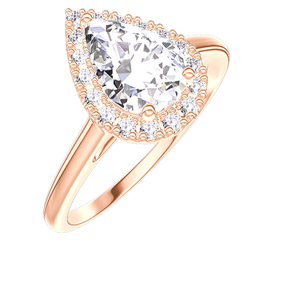 « L'ATELIER » NO. 177434Ring Pink gold 18 carats - Laboratory Diamond Pear 0.5 Carats - Halo Laboratory Diamond 4.8