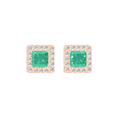 « L'ATELIER » NO. 178416Earrings Pink gold 18 carats - Emerald Princess 0.3 Carats (2 X) - Halo Diamond white