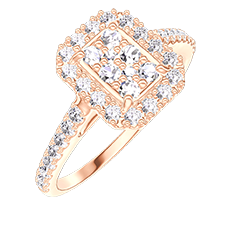 Ring Pink gold 18 carats - Cluster of natural diamonds Baguette equivalent 0.5 - Halo Diamond white - Setting Diamond white